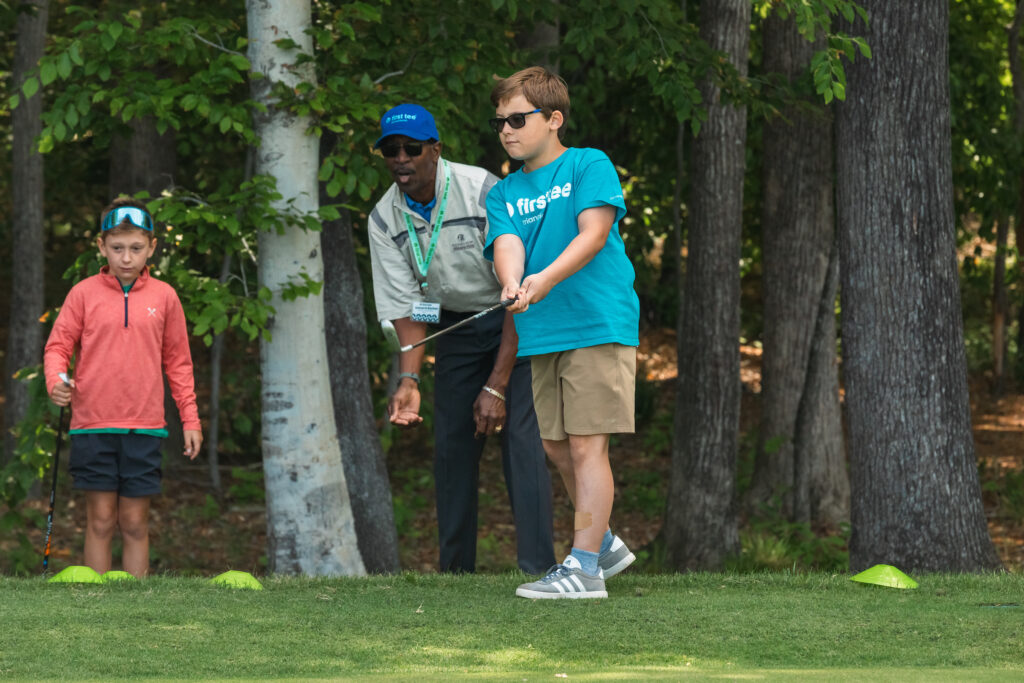 At First Tee, our coaches are more than instructors — they’re mentors. Each coach receives training in youth development, class management and safety practices. We also partner with trusted organizations like the Positive Coaching Alliance to ensure our team is equipped with the latest tools and strategies to support your child’s growth — on and off the course. Through ongoing learning and development, our coaches are prepared to create a positive, inclusive and empowering experience for every participant.